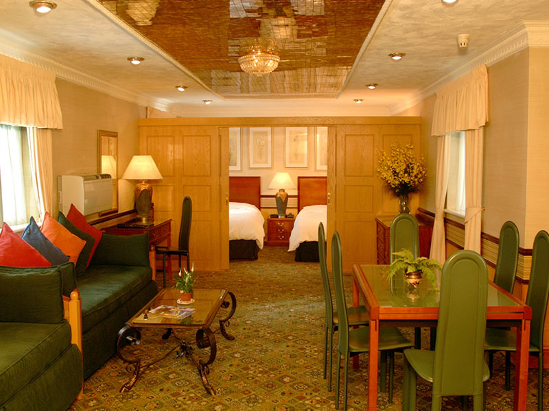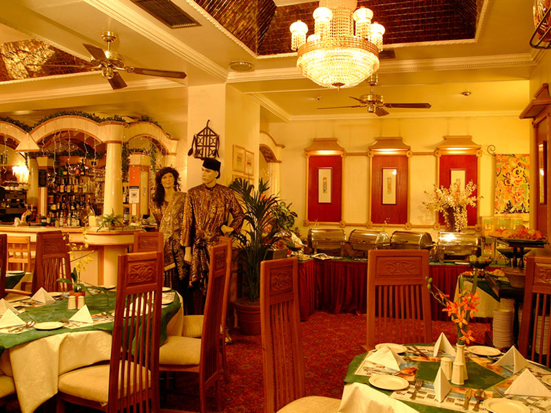 Вестибюль, номера и ресторан, элегантно оформлены в смешанном стиле, с элементами восточного декора.