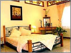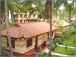 Описание. Отель Swiss Village Resort расположен на берегу моря среди кокосовых пальм. Это - частный отель, построенный с помощью швейцарских инвестиций. Он занимает площадь 16.000 кв. м и имеет частный белопесчаный пляж. В основу архитектурной концепции отеля был положен Древний Императорский дворец в Хюэ с изогнутыми крышами, покрытыми традиционной керамикой черепицей и круглыми колоннами. Комфорт номеров соответствует швейцарскому стандарту. Отель был сдан в эксплуатацию в декабре 2002 г. В отеле имеются: 4 прибрежных виллы, 16 номеров на виллах, 10 номеров в бунгало, 30 номеров (Н1) и 24 номера (Н2) в здании отеля , 2 ресторана и 3 бара.
